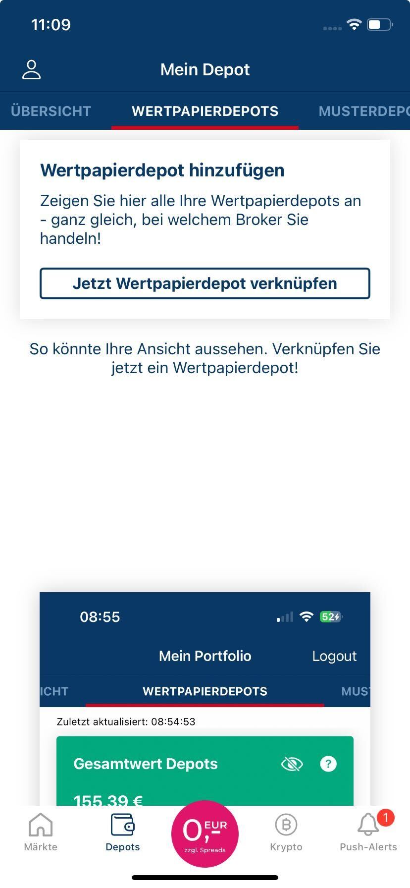 - Gehe zum Menüpunkt "Wertpapierdepots", wo du deine bereits verknüpften Depots findest.