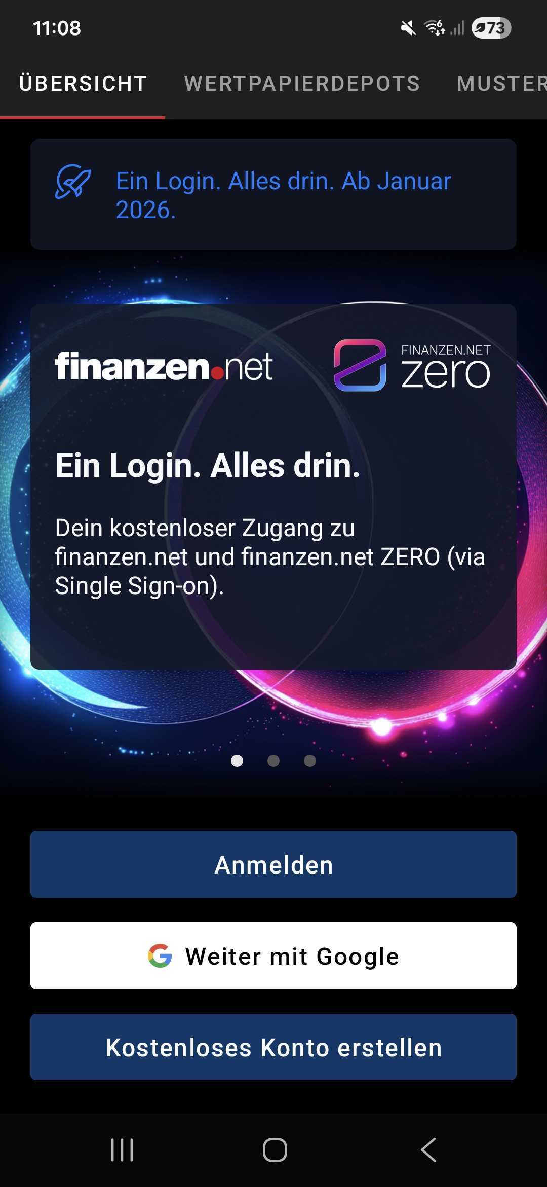 „Weiter mit Google“ ist eine schnelle und sichere Möglichkeit, dich bei der finanzen.net App mit deinem bestehenden Google-Konto anzumelden.