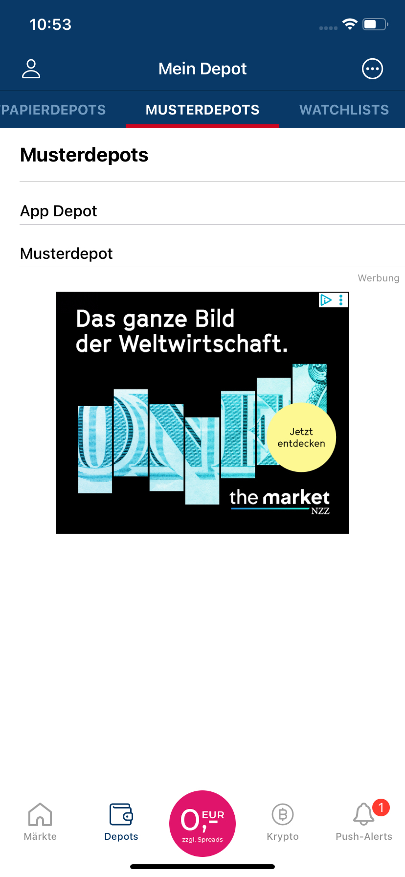 ℹ️ Bitte beachte: Lokales Musterdepot (App Depot) und lokale Watchliste (App Watchliste) werden nicht mehr unterstützt