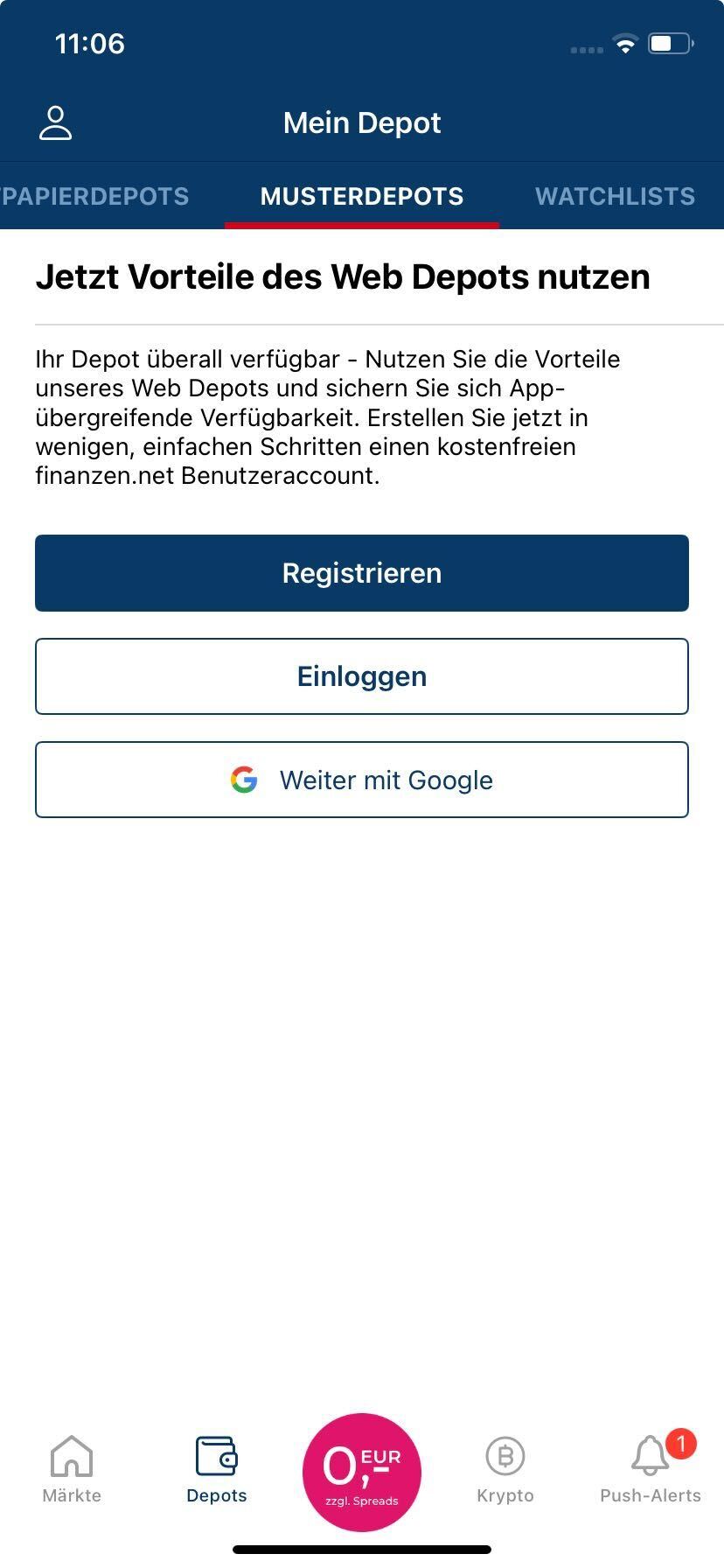 Wenn du noch kein finanzen.net-Benutzerkonto hast, kannst du dich direkt in der App registrieren. Du profitierst dann von Funktionen wie virtuellen Portfolios, Top-Börsennews, Realtime-Kursen und der Möglichkeit, deine echten Depots zu verknüpfen. Wichtig: Nach der Registrierung erhältst du einen Aktivierungslink per E-Mail. Klicke darauf, um dein Konto freizuschalten. Ohne diese Aktivierung wird das Konto wieder deaktiviert.