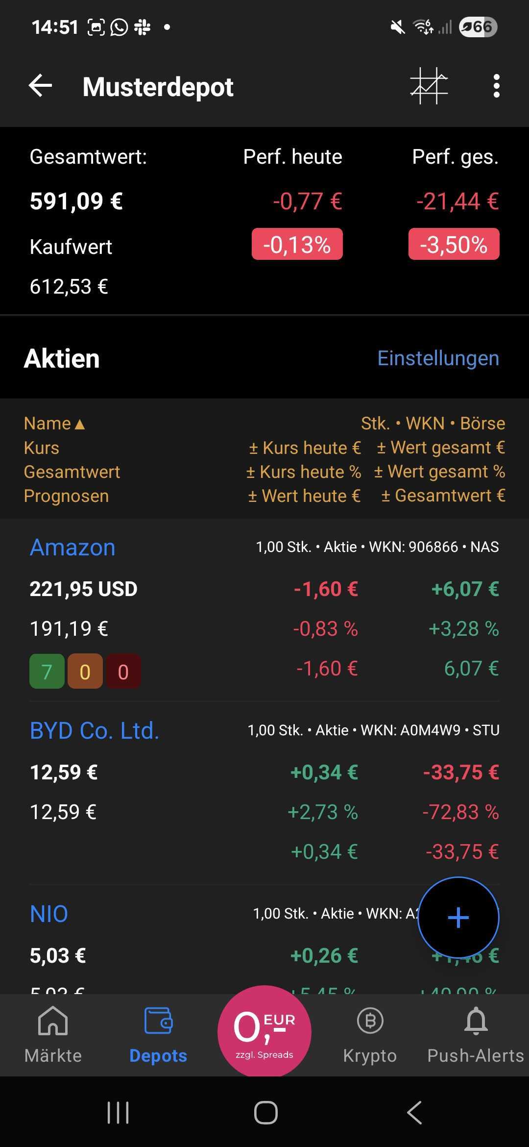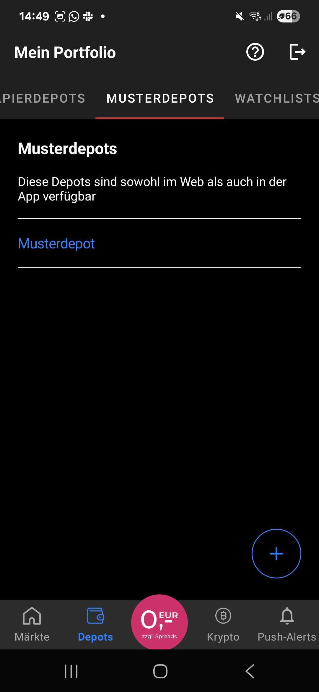 Du kannst über den Plus-Button ein neues Musterdepot anlegen.