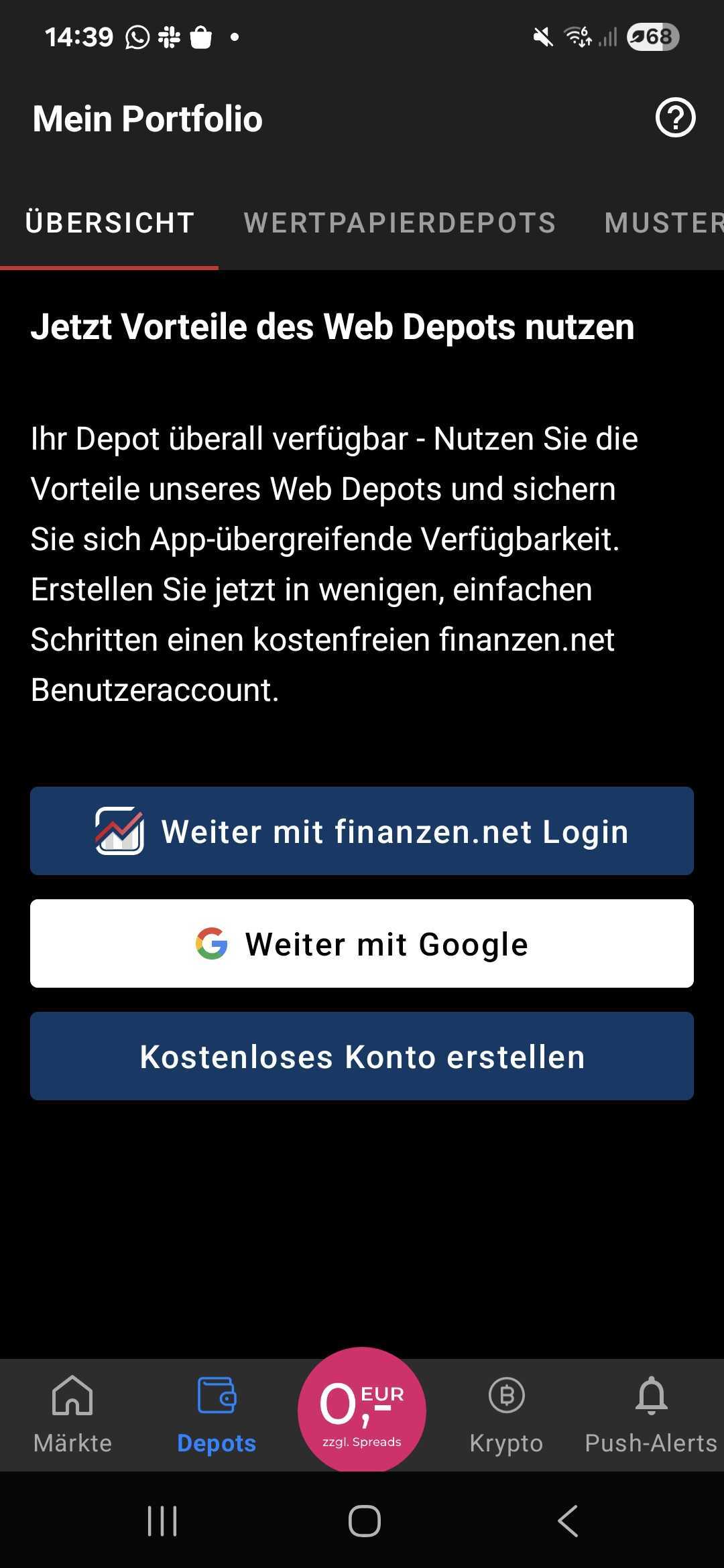 Tippe in der unteren Navigation auf den Button "Depots" und melde dich mit deinen finanzen.net-Zugangsdaten an.