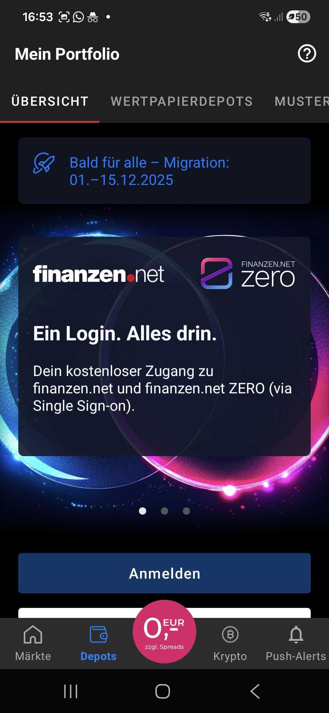 Tippe in der unteren Navigation auf den Button "Depots" und melde dich mit deinen gemeinsamen Zugangsdaten an.